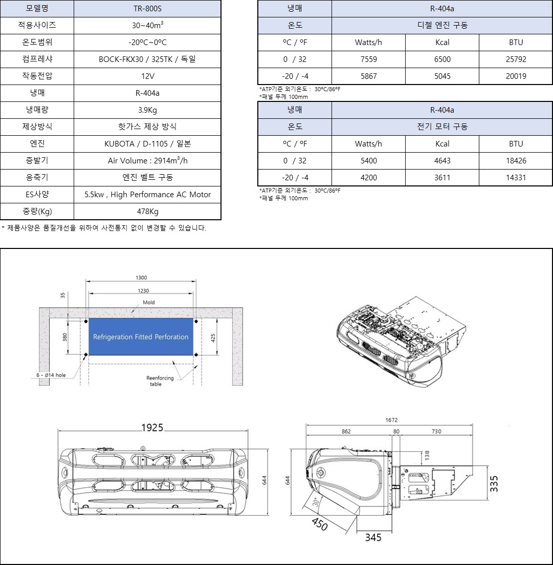 EV사양: 외부전원으로 전기모터를 사용하여 냉동기를 자동